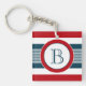Nautisches Design mit Monogramm-Dekoration in runder Form auf blau, weiß und rot gestreiftem Hintergrund