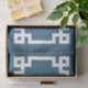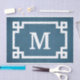 Monogramm-Design mit griechischer Grenzdekoration auf grunblauem Hintergrund