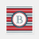 Nautisches Design mit Monogramm-Dekoration in runder Form mit Seilabbildungen auf blau, rot und weiß gestreiftem Hintergrund