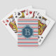 Nautisches Design mit Monogramm-Dekoration auf blau, weiß, rot und grau gestreiftem Hintergrund