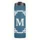 Monogramm-Design mit griechischer Grenzdekoration auf grunblauem Hintergrund