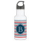 Nautisches Design mit Monogramm-Dekoration auf blau, weiß, rot und grau gestreiftem Hintergrund