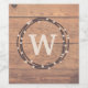 Monogramm-Design für Weihnachten mit Kranz- und Schneedekoration auf rustikalem Holzboden