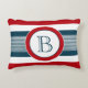 Nautisches Design mit Monogramm-Dekoration in runder Form auf blau, weiß und rot gestreiftem Hintergrund