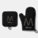 Monogramme Hochzeitsgeschenk Gefallen Elegant Grau Ofenhandschuh & Topflappen-Set