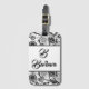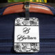 Monogrammed Black And White Floral Abstract Luggag Gepäckanhänger