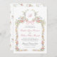 This monogrammed wedding invitation features soft watercolor wildflowers arranged in a graceful Victorian-inspired frame, accented with a delicate blush pink bow and refined botanical details. The romantic front design is paired with a coordinating floral pattern on the back, creating a cohesive and timeless look. Inspired by an English garden, the overall aesthetic feels elegant, airy, and classically romantic.