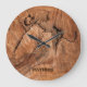 Monogrammed Light Brown Wood Design Große Wanduhr
