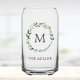 Introducing our Monogrammed Watercolor Sage Green Leaves Wreath Can Glass. Featuring an elegant watercolor illustration of leaf wreath, give a nature accent to your morning drink. Personalize the text and make it your!