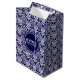 Monogrammierte Dunkelblau-Weiß-Vintage Damasken 3 Mittlere Geschenktüte
