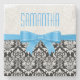 Monogrammierte schwarz-weiße Damaskas Blue Ribbon Steinuntersetzer