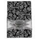 Elegante metallische silberne, florale Dämme auf schwarzem Hintergrund. Anpassbare und optionale Monogramm