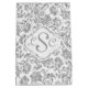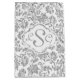 Elegante metallische silberne, florale Damasken über weißem Hintergrund können Sie ändern. Silberdämpfer haben einen transparenten Hintergrund. Anpassbare und optionale Monogramm
