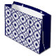 Monogrammiertes blaues und weißes Quatrefolienmust Große Geschenktüte