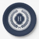 Monogrammiertes blaues und weißes Wappen Pappteller
