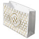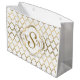 Monogrammiertes Gold & White Quatrefolienmuster Große Geschenktüte