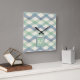 Monogrammm | Geometrisches Muster der Pastel Quadratische Wanduhr