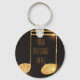 Schwarze goldene Musiknoten Monogramm Name Schlüsselanhänger Einfach und elegant für einen Musikliebhaber! Schwarzer Hintergrund mit Imitaten goldenen Musiknoten. Template für Ihren Namen, golden handgeschriebene Stil Skript.