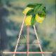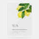 This design presents a minimalist black-on-clear composition that emphasizes clean typography and refined botanical detail. A delicate lemon citrus branch with leafy greenery is positioned in the upper right corner, adding a subtle organic accent without disrupting the overall balance.