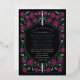 Mit diesem königlichen Schwert und Schild laden Sie Ihre Hochzeitsgäste zu einer mittelalterlichen Fantasy Monogramm-Einladung ein. Freuen Sie sich auf elegante echte Folienakzente und bordeauxfarbene Blumen vor schwarzem Hintergrund. Dieses Design ist perfekt für Paare, die eine königliche, aber moderne mittelalterliche Fantasy-Ästhetik suchen. Personalisieren Sie den Text, den Schriftart und die Farben, um Ihre Designeinstellungen zu Anzug zu bringen. Matching Items in unserem Shop für ein komplettes Party Thema. BITTE BEACHTEN SIE: Das Silber auf der Rückseite dieses Designs ist KEINE echte Folie.