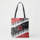 Zeitgenössische geschwungene Klaviertasten und weiße Noten mit kontrastierenden roten und schwarzen Tafeln mit anpassbarem Monogramm