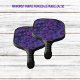 Dieses pulsierende, digitalisierte Foto, gemustert in geometrischen Formen und Linien, ist farbenfroh, in Royal-lila, Amethyst, Lila, marineblau und schwarz dargestellt.