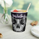 Monster bash skeleton-themed Halloween party paper cup design. The design features our own hand-drawn illustration of a close-up view of a skeleton monster's face. "Monster Bash" is displayed in stylish brush script handwriting displayed over the vampire artwork to create a bold and unique Halloween party design. All illustrations are original artwork by Moodthology.