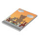Ein wütender Braunbär zerstört eine Stadt und Gebäude bei Sonnenaufgang auf dieser coolen Fantasie, inspiriert auf einem Notizblock