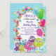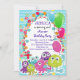 Monster Spaß Geburtstagsfeier Einladung mit Zickzack gestreiften Hintergrund , Ballons und Konfetti!