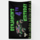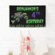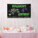Bringen Sie große Monster-Jam-Begeisterung in die Feier mit diesem auffälligen Geburtstagsbanner-Design, das den legendären Monstertruck Grave Digger zeigt. Vor einem dramatischen schwarzen Hintergrund rast der ikonische Truck über das Design mit seiner charakteristischen Schädelgrafik, neon-grünen Flammen und übergroßen Monsterrädern und fängt die aufregende Energie einer Monster-Jam-Arena ein. Der Truck erscheint in lebendigen Details über einem lila-gelben Rennmuster, das Bewegung und eine Hochgeschwindigkeits-Monstertruck-Atmosphäre hinzufügt.