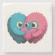 Niedliches Monsterpaar umarmt sich und hält ein Herz. Netter Untersetzer als Valentinstag-Geschenk.