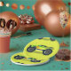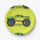 Ein gewaltiger Monsterwagen, seine raue Fassade mit lebhaften Farben und waghalsigen Aufklebern, rauscht mit einer Aura des Powers und der Aufregung vor einer lebendigen grünen Kulisse, die den aufregenden Geist des Off-Road-Abenteuers und des durch Adrenalin angetriebenen Triumphes verkörpert. Der auffallende Kontrast zwischen dem kühnen LKW und dem belebten Kalkgrün schafft ein dynamisches visuelles Spektakel.