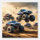 Bilder sind Monster-LKWs, die durch die Wüste fahren.
