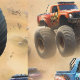 Monster-Lkw, die in der Wüste fahren, Tapete
