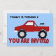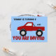 Ein großartiges Thema für den Geburtstag eines Jungen. Einfach zu personalisieren! Die zerdrückten Buchstaben auf der Vorderseite der Einladung, die sagen "Sie sind eingeladen", können entfernt und durch Ihre eigene Textauswahl ersetzt werden. Nutzen Sie die individuelle Funktion, um Ihre Einmaleinladung für Monster-Truck zu erstellen. Originale Kunst von Rebecca von Night Owl's Menagerie, Copyright 2011.