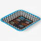 "Boom, Crunch, Crash, It's A Monster Truck Bash!" fun birthday party celebration for a boy. Designed in aqua blue and orange text on a black background, the monster truck artwork really pops. The dark brown dirt tracks add an additional flair to the overall design.