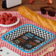 "Boom, Crunch, Crash, It's A Monster Truck Bash!" fun birthday party celebration for a boy. Designed in aqua blue and orange text on a black background, the monster truck artwork really pops. The dark brown dirt tracks add an additional flair to the overall design.