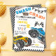 Monster truck bash cool modern kid 2nd birthday einladung