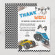 Send roaring thanks after the party with this fun Monster Truck Birthday Thank You Card, designed for kids who love big tires, racing tracks, and action-packed celebrations.This exciting thank you card features colorful monster trucks racing across a rugged dirt track with checkered racing flags and bold racing graphics. The playful design captures the thrill of a monster truck birthday party, making it a perfect way for kids to thank friends and family for celebrating their special day. The front of the card includes a cheerful “Thank You for Smashing & Crashing into My Party” message that perfectly matches a monster truck theme. The playful trucks, racing banners, and checkered pattern add a dynamic motorsport feel that kids absolutely love. The inside message is easy to customize so you can add your child’s name and personalize the note to guests who brought gifts and joined the celebration. Perfect for Monster truck birthday party thank you cards, Kids racing themed birthday parties, Monster truck party favors, Monster truck themed celebrations or Boys birthday racing party. Pair this card with matching monster truck invitations and party decorations to complete your racing-themed birthday celebration.Thank you for stopping by. If you have any doubts regarding customization pls message me here or contact me at arteartz0588@gmail.com.