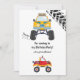 Monster LKW Geburtstagsparty Dankeschön-Karte mit einem vereinfachenden Schwarz-Weiß-Farbschema, das auf Ihre Veranstaltungsspezifikationen angepasst werden kann.