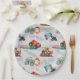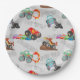 Monster Truck Stunts Aquarellmuster Grau Pappteller
