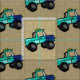 Große Räder, Aqua und blaue Monster LKW Design über eine natürliche Farbmischung von Bräune und Brauntönen.