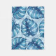 Monstera Aquarellmuster blau Fleecedecke