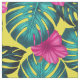 Monstera Blätter und Hibiskus, Aquamarin rosa auf Stoff