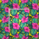 Monstera Blätter und Hibiskus, Aquamarin und rosa auf Gelb. Digitale Aquarellbilder zeichnend. Bitte Karo meine Designs für weitere Farbvarianten dieses Musters heraus. Vielen Dank.