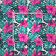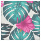 Monstera Blätter und Hibiskus, Aquamarin Rosa auf Stoff