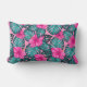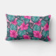 Monstera Blätter und Hibiskus Aquamarin und rosa a Lendenkissen