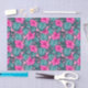 Monstera Blätter und Hibiskus Aquamarin und rosa a Seidenpapier