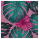 Monstera Blätter und Hibiskus Aquamarin und rosa a Stoff