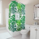Grüner Duschvorhang mit einem modernen, trendigen Monstera deliciosa Pflanze verlasse botanische tropische Muster Design und personalisierbare Monogramm.